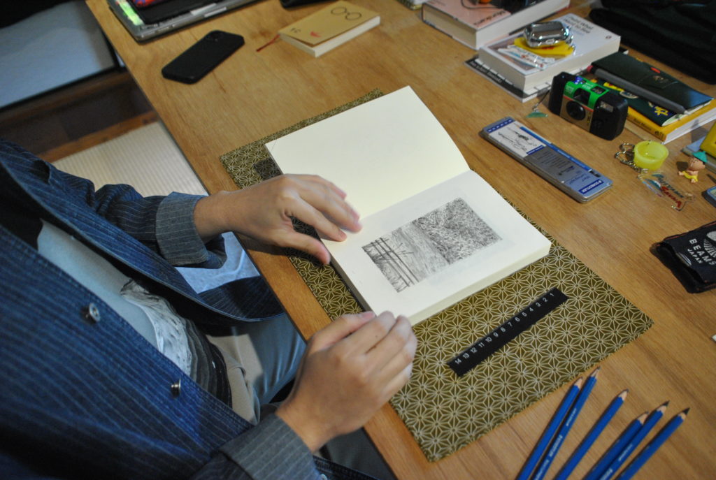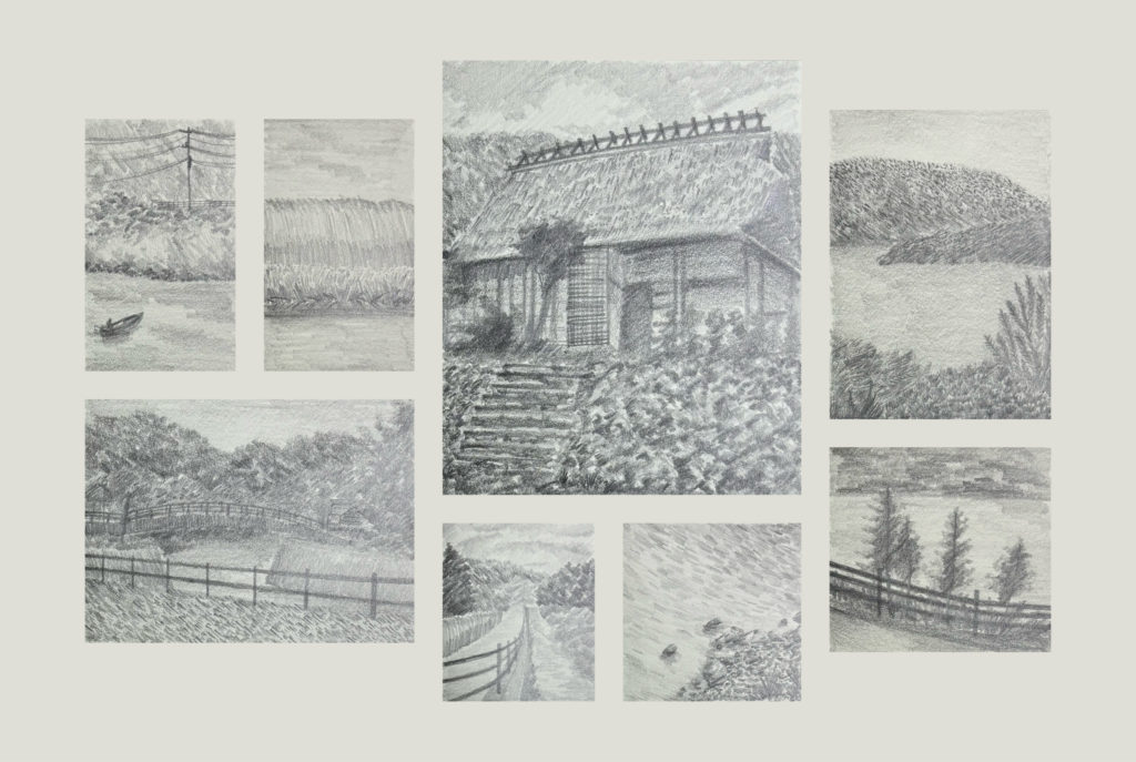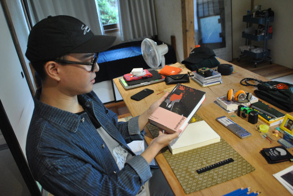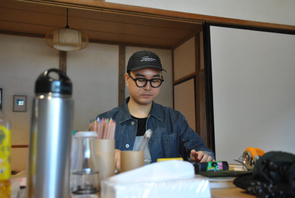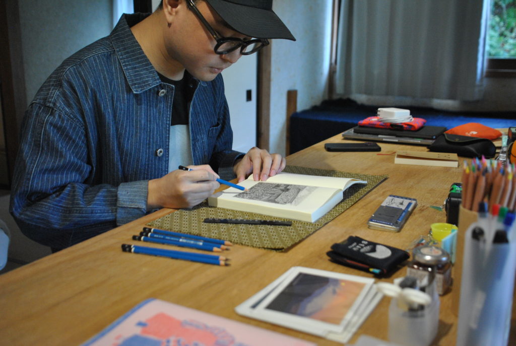 During his stay, he explored various sites and areas around Fujikawaguchiko—including local attractions and the town center—and devoted himself to creating journal-like drawings; already deeply familiar with and actively researching contemporary Japanese culture, he continued his research in Tokyo after the residency and has been developing these findings as seeds for ongoing work.