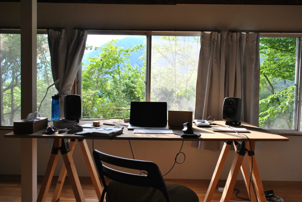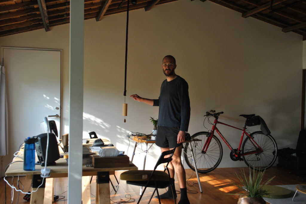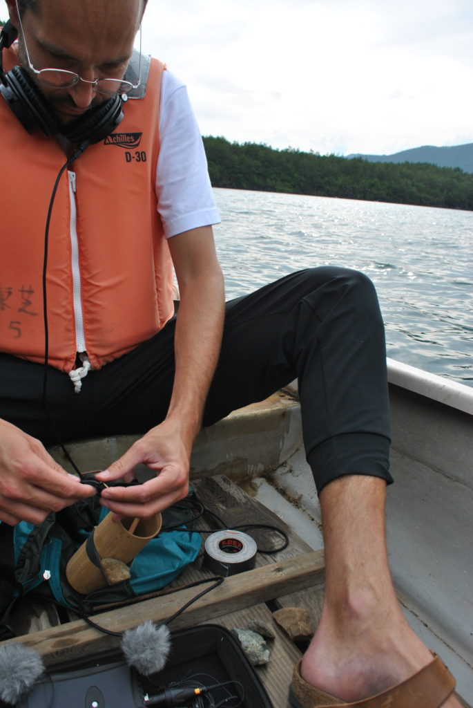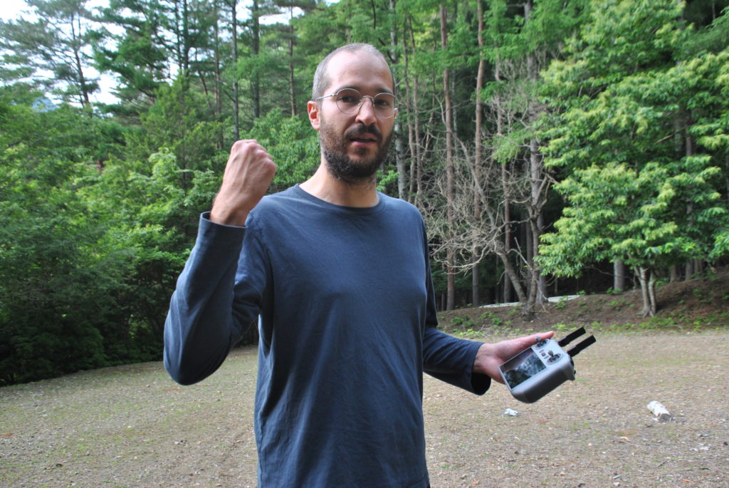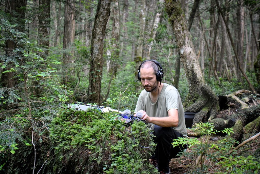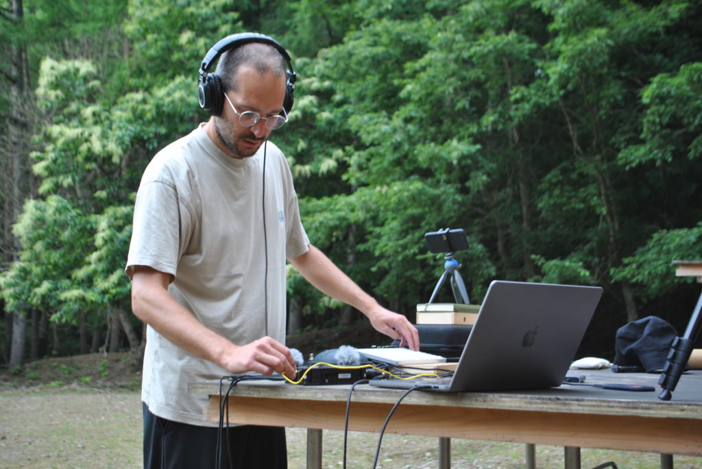Guided by curiosity and initiative, he explored the Fuji region extensively—often by bicycle, which he brought from France—conducting his own artistic and environmental research. He carried out numerous field recordings and sound experiments across the lake and within the Aokigahara forest, integrating the subtle acoustic layers of nature into his music.